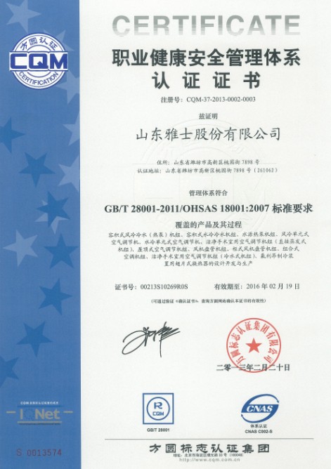 職業(yè)健康管理體系認(rèn)證證書(shū)(山東)